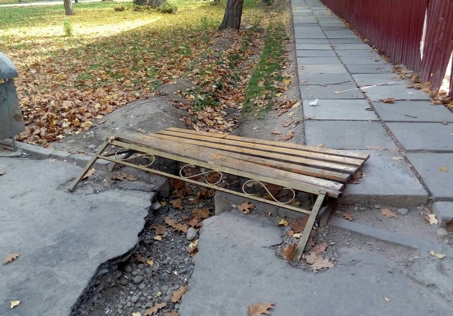 В начале сентября в столичном сквере, расположенном на пересечении улиц Бакаева и Айни, неизвестные попытались украсть скамейку.