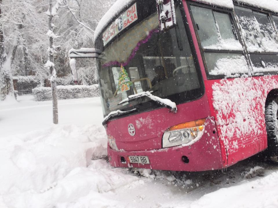 В Бишкеке из-за гололеда автобус №8 съехал в арык. Об этом сообщили в социальных сетях горожане.
