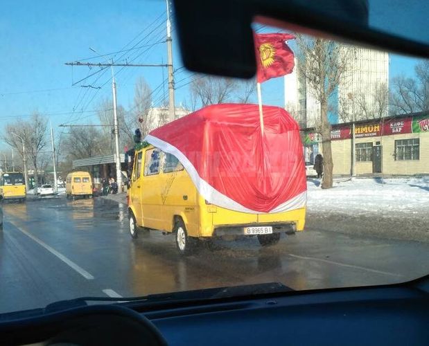 В Бишкеке ездит маршрутка в огромном колпаке и с флагом. Фото необычного буса прислал ИА «24-kg.com» читатель.