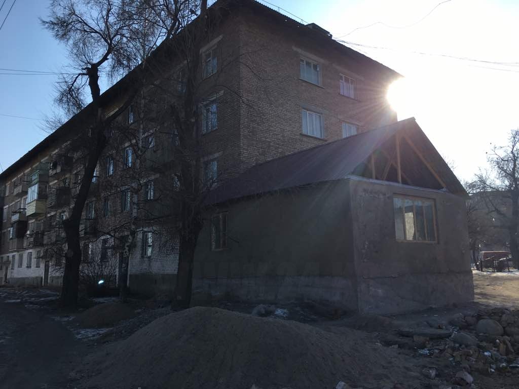 В Караколе к многоэтажке пристроили одноэтажный дом. Об этом ИА «24.kg» сообщил читатель.