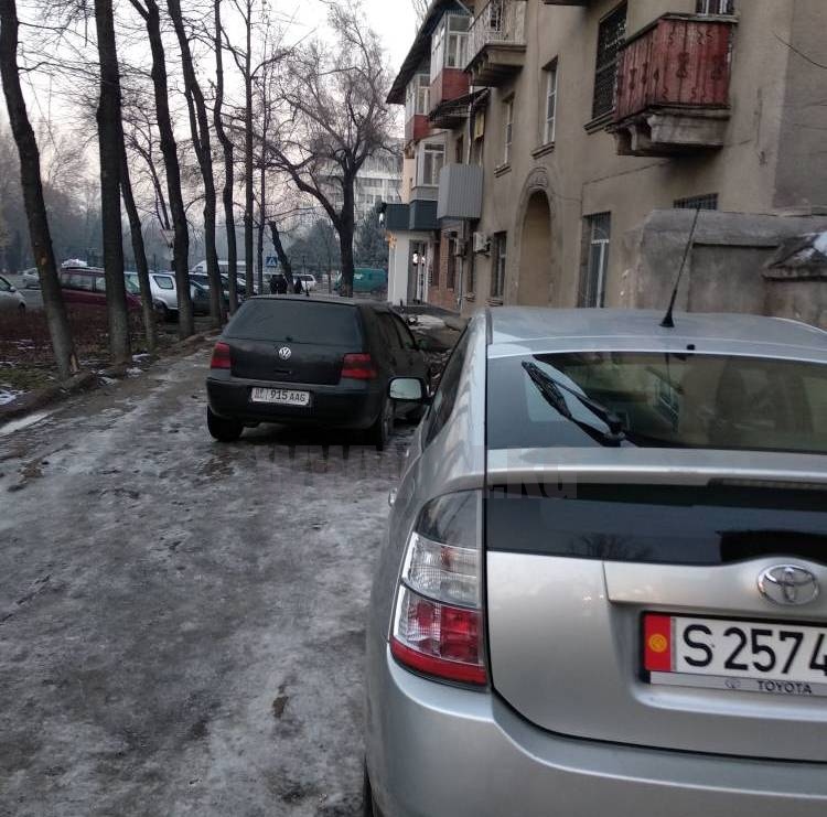 «Мы устали от бездействия мэрии», — написали ИА «24-kg.com» жители улицы Логвиненко, где на разбитом тротуаре между проспектом Чуй и улицей Киевской устроили парковку.
