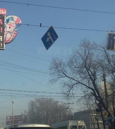 В Бишкеке знак над дорогой может упасть на автомобили в любой момент