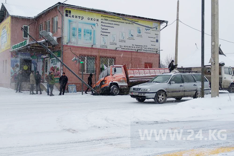 В Бишкеке на улице Чортекова грузовой автомобиль сбил светофор. Об этом ИА «24-kg.com» сообщил читатель.