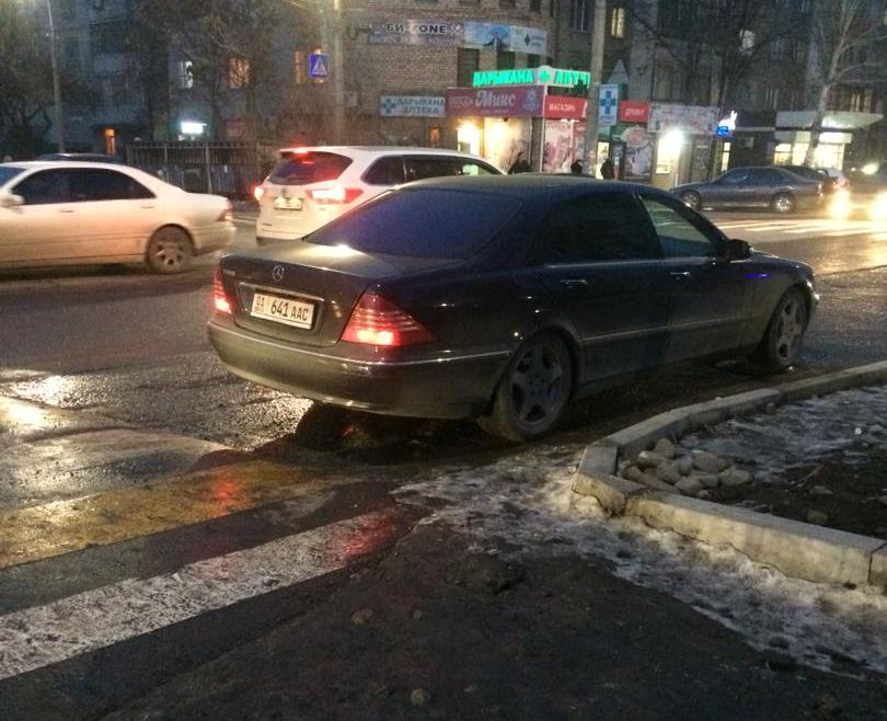Другой автолюбитель поставил машину ближе пяти метров от пешеходного перехода на пересечении улиц Боконбаева и Шопокова, возле школы №67.