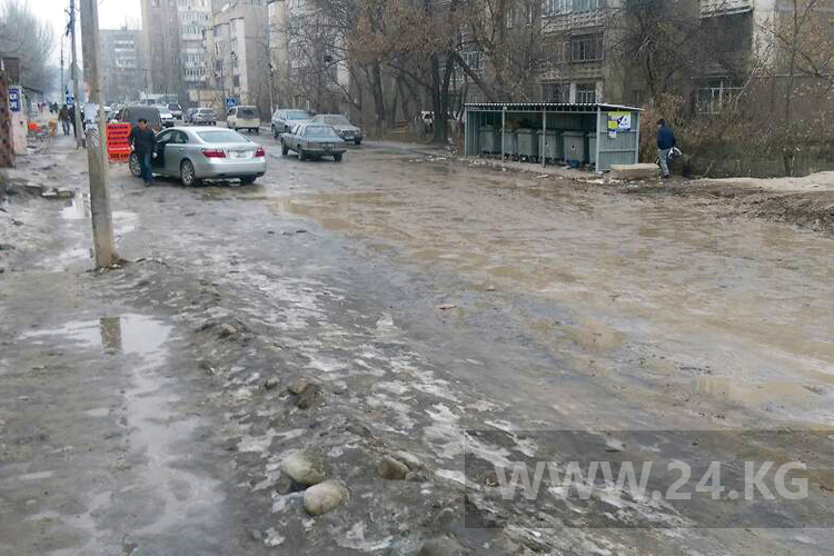 Улица Мамбетова в микрорайоне «Восток-5» после ремонта стала непроходимой из-за грязи. Об этом ИА «24-kg.com» сообщила читательница.