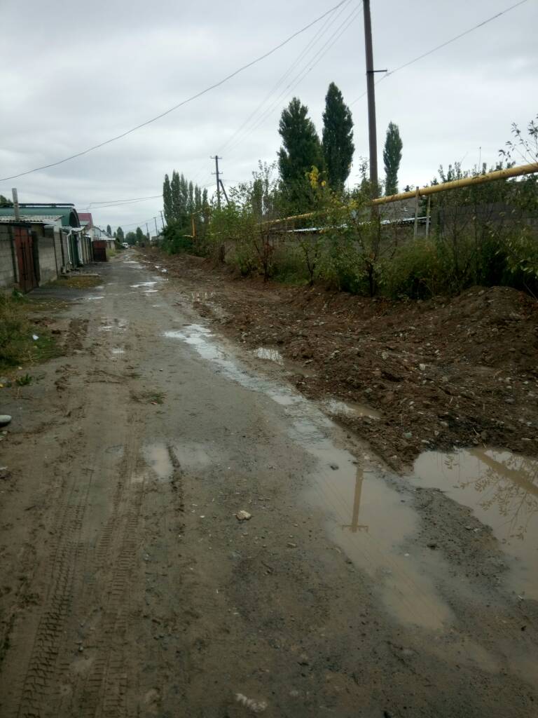 Улицу Дмитрова в жилмассиве «Ала-Тоо» перерыли газовщики. Из-за грязи она стала непроходимой. Об этом ИА «24-kg.com» сообщил читатель.