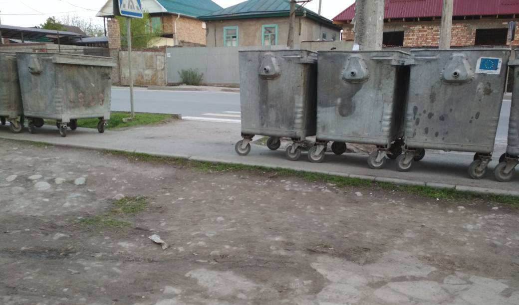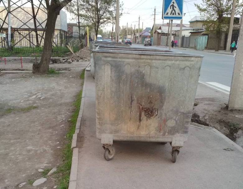 Мусорные баки в районе пересечения улиц Гагарина и Термечикова поставили прямо на тротуар. Об этом ИА «24-kg.com» сообщил читатель.