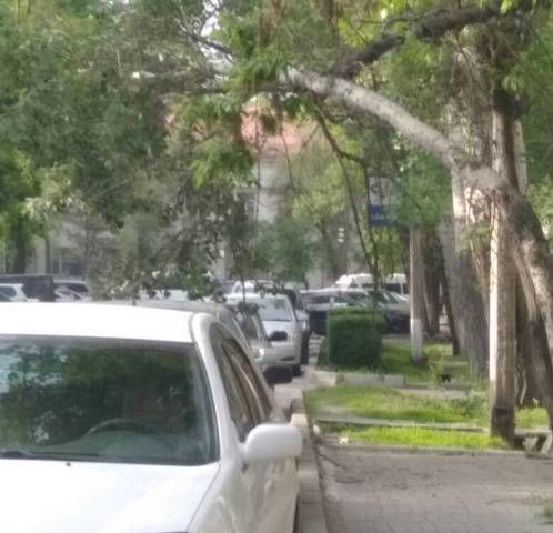 На пересечении улиц Тоголока Молдо и Московской ветка повисла на проводах. Об этом ИА «24-kg.com» сообщил читатель.