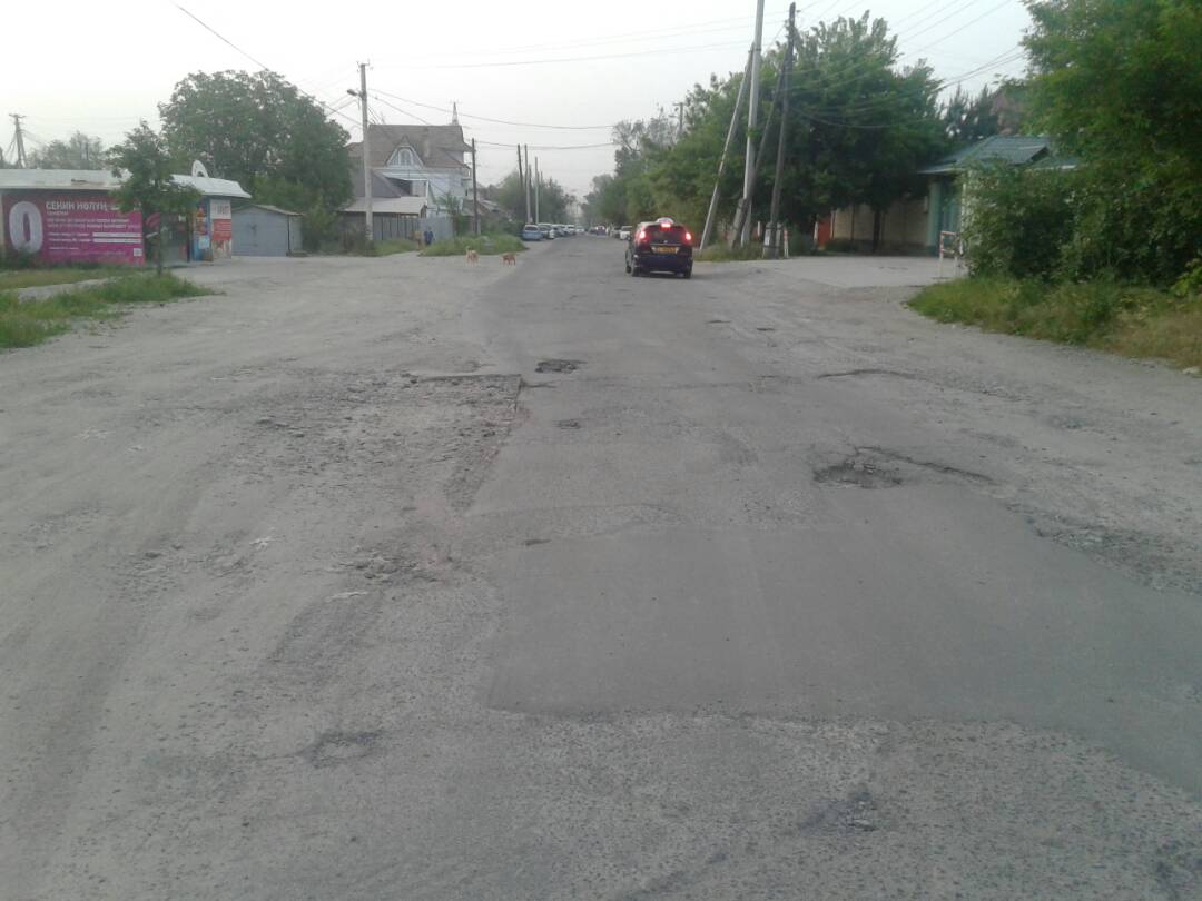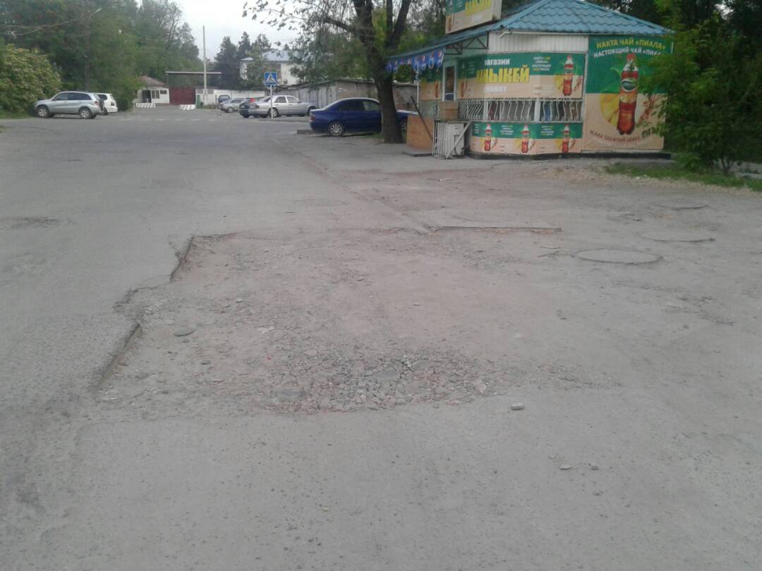 Бишкекчане прислали фотографии улицы Панфилова, недалеко от улицы Скрябина. Просят засыпать ямы.