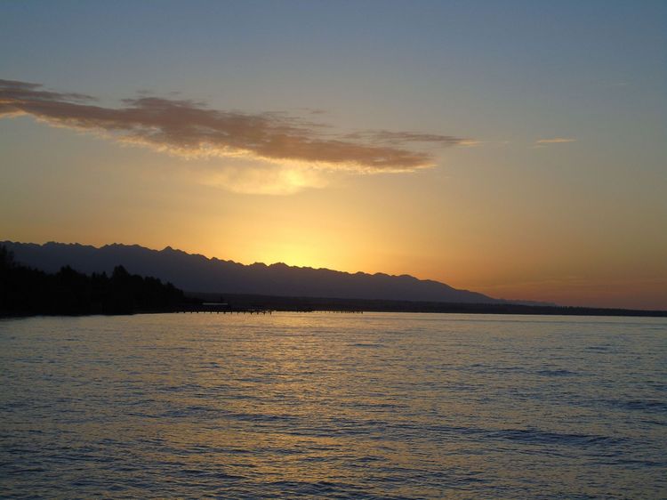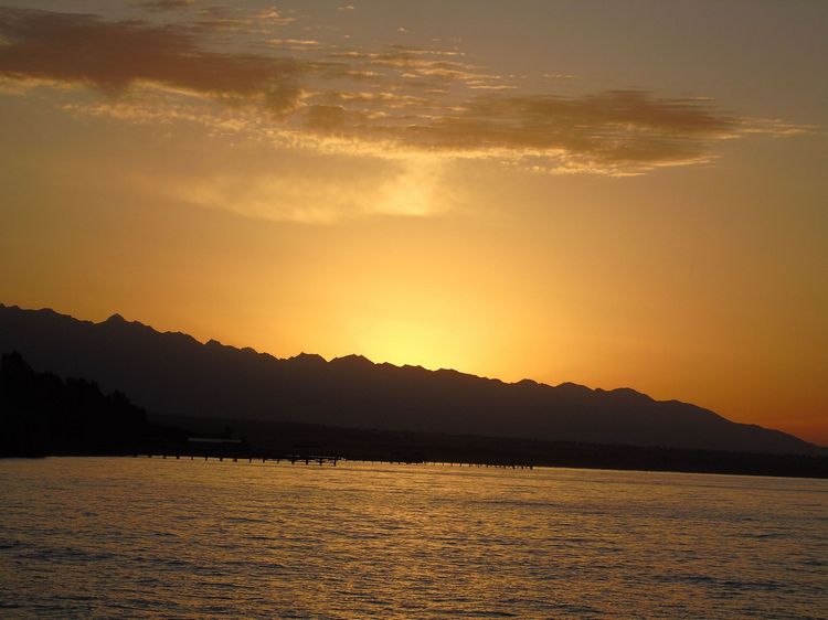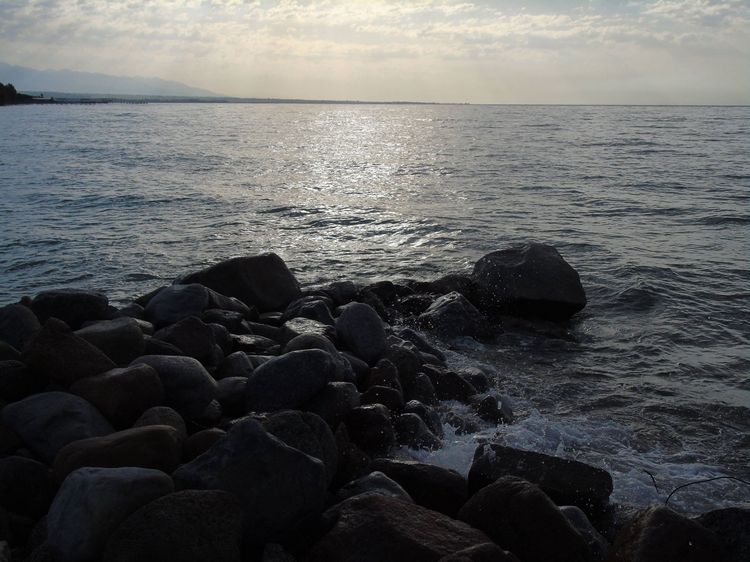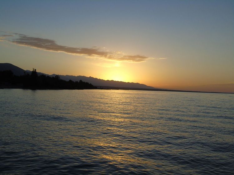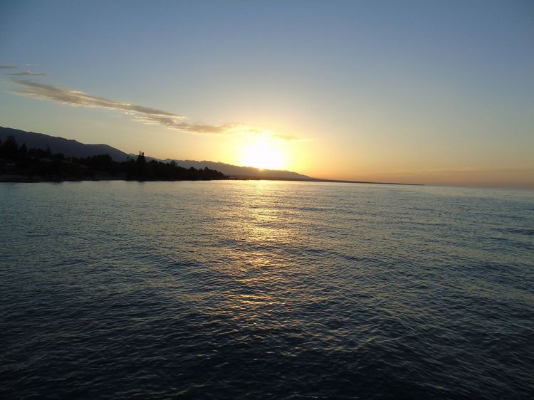 Прогулялись по горам, а теперь полюбуемся неповторимыми иссык-кульскими закатами. В исполнении же Орынбека Асилбаева они приобретают еще и некую чарующую таинственность.