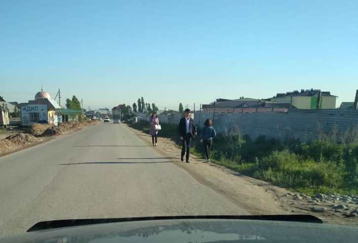 В жилмассиве «Ак-Ордо» на улице Тагай-Бий — от Гагарина до Кок-Асаба — люди вынуждены ходить по проезжей части. «С 2009 года живем без тротуара и без остановок. Скоро откроется новая школа. Мы боимся за жизни детей», — написал читатель.