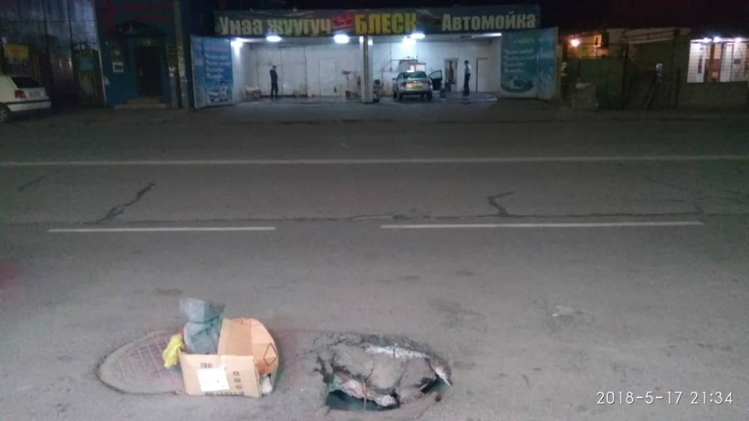 На улице Курманджан Датки (вблизи от улицы М.Джалиля) провалился асфальт. Об этом ИА «24-kg.com» сообщил читатель.