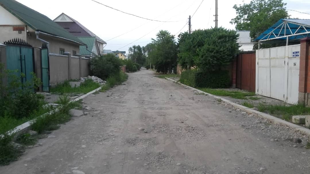 «В районе Пишпека в 2016 году начали ремонтировать улицу Тойгомбаева. Все пересекающие ее улицы заасфальтировали где-то по 100 метров, но оставили улицы Кривоносова и Ломоносова вот в таком состоянии», — написал читатель.