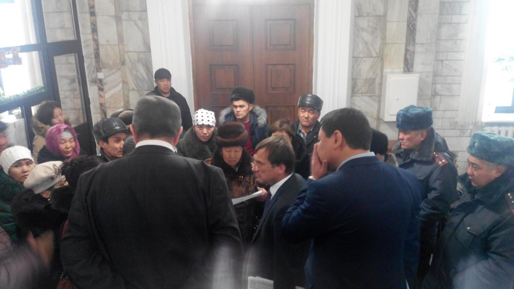 В фойе мэрии Бишкека митингуют около 20 жителей жилмассива «Ак-Ордо».