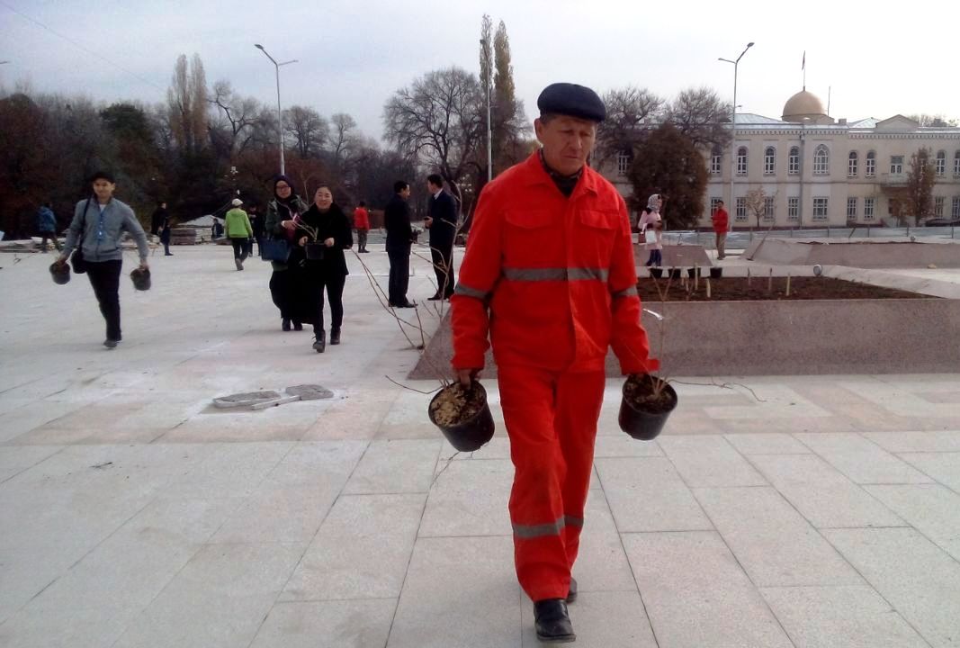 В рамках Недели молодежи активисты организовали у Кыргызского исторического музея в Бишкеке субботник и высадили саженцы.