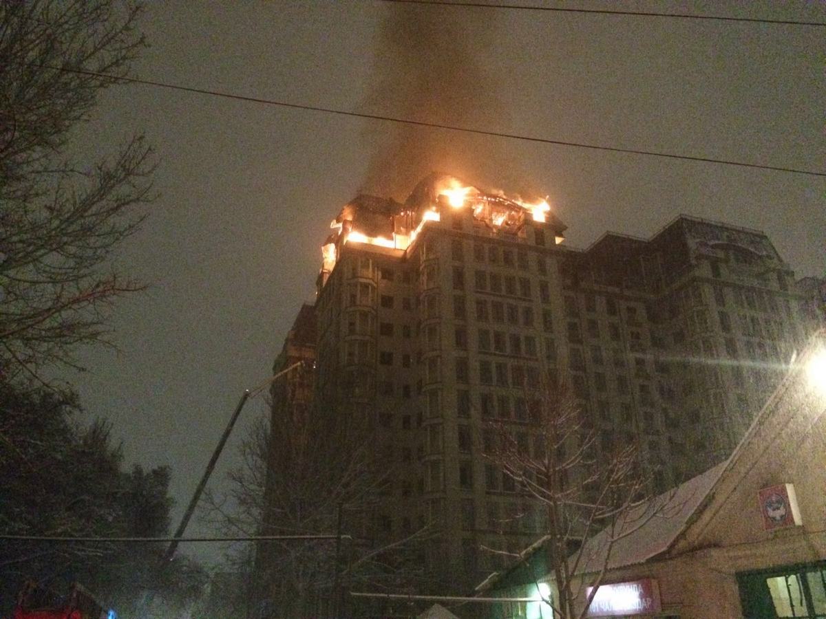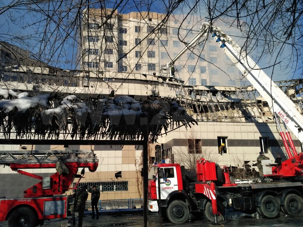 Первый большой пожар случился в феврале, когда сгорела крыша недостроенной элитки по улице Элебаева близ типографии «Учкун».