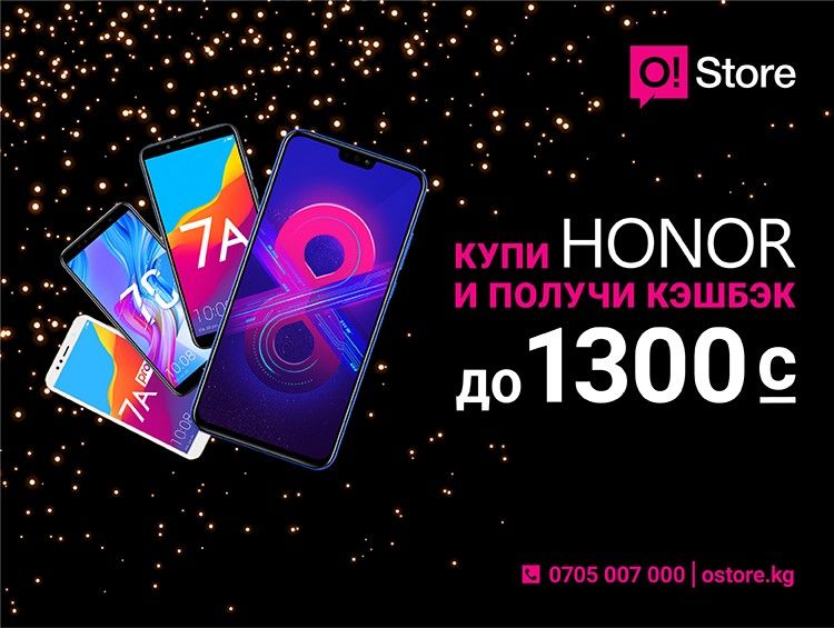 Получив кэшбэк, вы сможете потратить его на любые услуги связи в сети О!, одновременно сэкономив при этом на покупке нового телефона. Заказывайте смартфоны Honor на сайте ostore.kg или по телефону 0705007000.