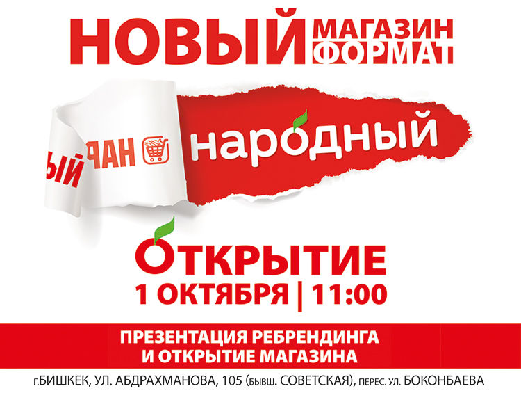 Торговый дом «Народный», представляющий крупнейшую национальную сеть магазинов в Кыргызстане, впервые за 17 лет запускает грандиозное обновление. Магазины сети в ближайшем будущем ждет серьезная модернизация, они станут еще более комфортными и современными.