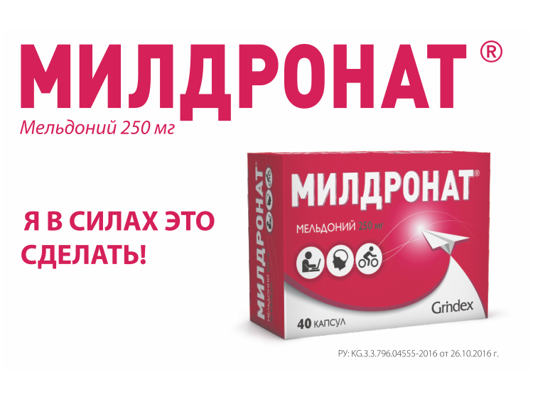 Преодолеть эту поствирусную разбитость, астению, снова «зарядить батарейку» возможно при помощи препарата «Милдронат® 250 мг», который оптимизирует энергетический обмен в клетках организма, оказывает тонизирующее действие. «Милдронат® 250мг» способствует восстановлению работоспособности при астенических состояниях при физических и умственных перегрузках, то есть «заряжает» нас энергией. С «полной батарейкой» снижается раздражительность, недомогание, утомляемость, открывается «второе дыхание» и появляются энергия и ощущение, что все тебе по силам.