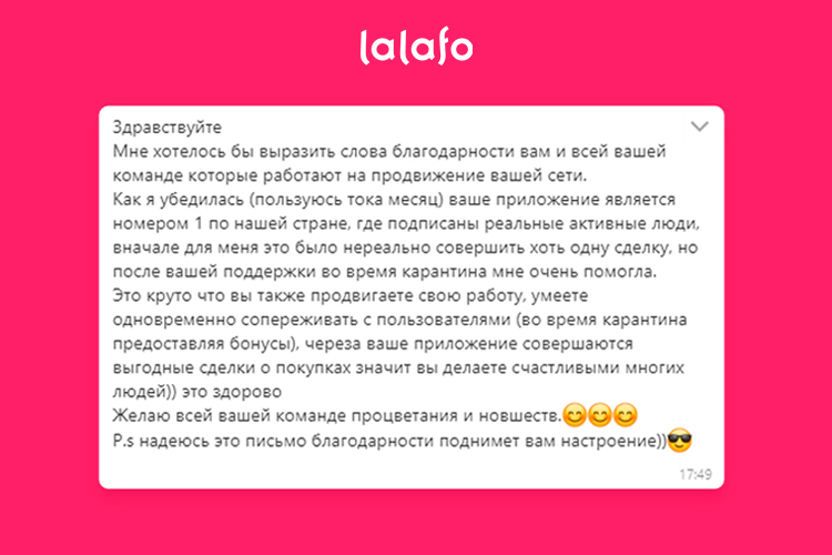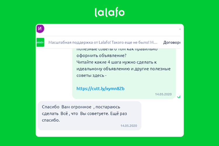 Поразительно, но даже во время самых жестких ограничений оставался спрос на товары и услуги во многих категориях. Сервис Lalafo следил за тенденциями и рекомендовал бизнесу продолжать размещать объявления, коммуницировать с клиентами. Именно в этот период компания запустила программу помощи, благодаря которой более 26 тысяч пользователей воспользовались советами и бесплатной помощью и продолжали свою работу.