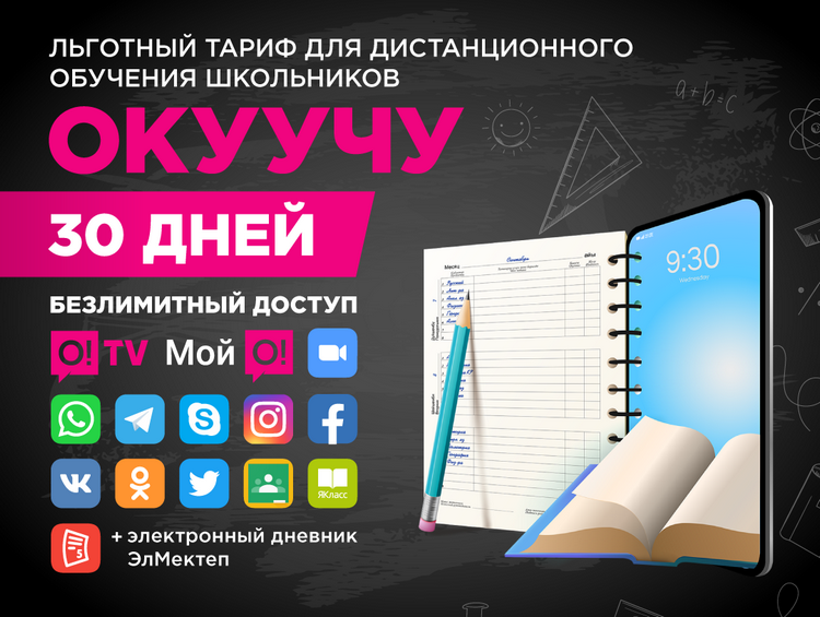 В 30-дневном тарифе «ОКУУЧУ» есть все необходимое для дистанционного обучения