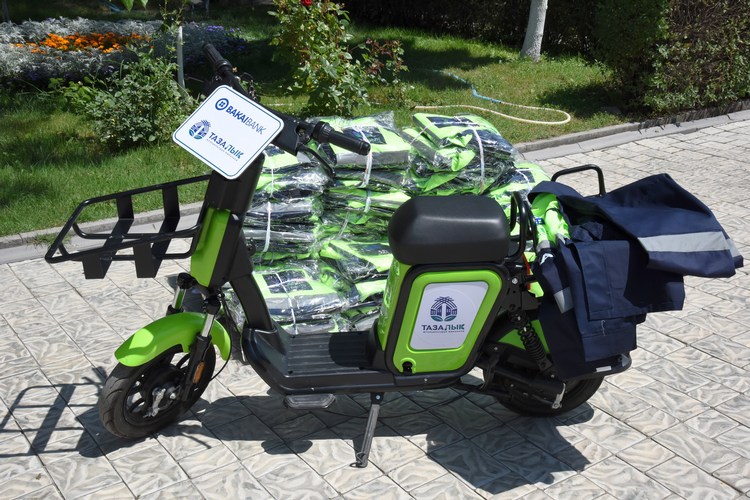 «Мы внимательно следим за работой «Тазалыка». В социальных сетях увидели, как глава предприятия объезжает участки на арендуемом им самокате, и решили, что будет целесообразно подарить предприятию электроскутер. С его помощью руководство «Тазалыка» сможет оперативно реагировать на просьбы и заявки горожан, в кратчайшие сроки добираться до самых проблемных мест на экологически чистом транспорте и контролировать процесс уборки столицы», — сказала председатель правления «Бакай Банка» Нургуль Сатарова.