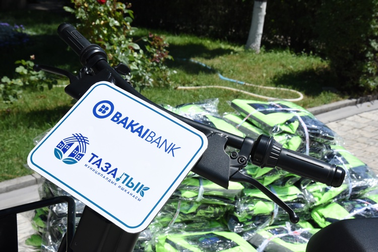 «Бакай Банк» вновь оказал спонсорскую поддержку муниципальному предприятию «Тазалык». На этот раз коммунальной службе помимо спецодежды передали необходимое оборудование, в том числе электроскутер.