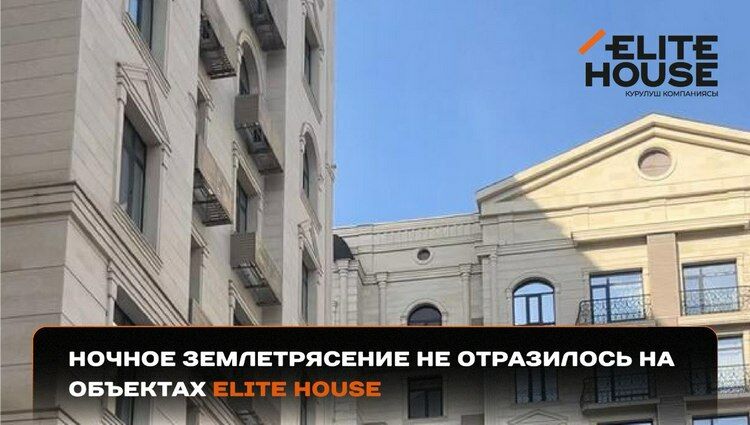 В свете последних событий строительная компания Elite House ответственно заявляет: все здания застройщика соответствуют стандартам сейсмической безопасности. Представители компании посетили объекты и лично убедились в том, что опасное природное явление не причинило никакого ущерба жильцам.