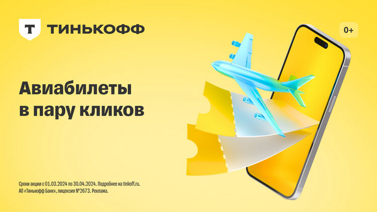 Выберите авиабилет от 2 тысяч 500 рублей в приложении или на сайте «Тинькофф» в разделе «Город» → «Путешествия». В «Тинькофф Путешествиях» собраны билеты со всех сайтов: самые дешевые и с быстрыми перелетами.