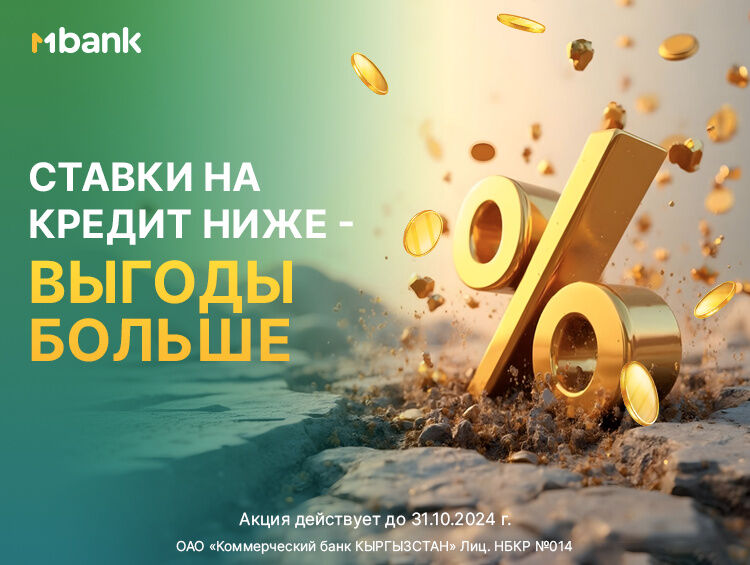 Для увеличения возможностей клиентов ОАО «Коммерческий банк КЫРГЫЗСТАН» | MBANK запускает выгодную акцию по кредитам с пониженными процентными ставками для разных категорий. До конца октября 2024 года у клиентов банка есть возможность оформить займы на максимально выгодных условиях быстро и без лишних сложностей, не выходя из дома или офиса.
