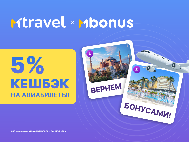 С октября 2024 года сервис MTravel в приложении MBANK запускает выгодную акцию: кешбэк 5 процентов с каждой покупки авиабилета. Это отличная возможность не только насладиться полетами, но и сэкономить на следующих путешествиях.