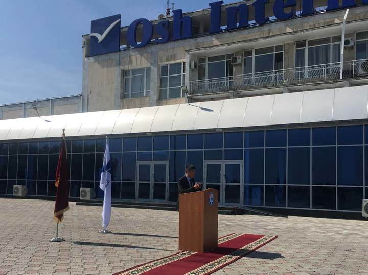 В Международном аэропорту «Ош» 19 апреля прошло торжественное открытие нового расширенного здания, где принял участие председатель правления Открытого акционерного общества «Международный аэропорт «Манас» Эмир Чукуев.