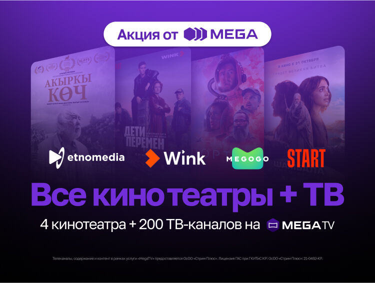 Государственный оператор сотовой связи MEGA, 100 процентов акций которого принадлежат Государственному банку развития КР, порадовал своих клиентов запуском новой услуги «Все кинотеатры + ТВ», которая выводит возможности цифрового досуга на совершенно новый уровень. Абоненты, подключившие подписку «Кинотеатры + Premium TV», получат доступ к огромному выбору фильмов, сериалов и телевизионных каналов.