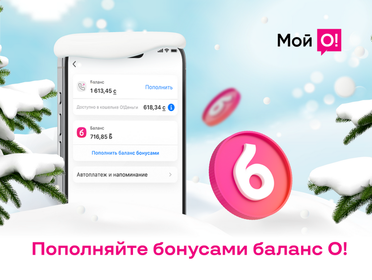 Пополнить баланс бонусами можно в приложении «Мой О!»: