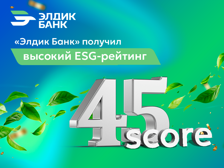 28 января 2025 года «Элдик Банк» в рамках рейтинга S&P Global Corporate Sustainability Assessment 2024 получил оценку 45 баллов при средней глобальной оценке среди компаний международной финансовой отрасли 37 баллов. Таким образом, «Элдик Банк» (процентиль — 67) вошел в первую треть ведущих компаний данного рейтинга в международной финансовой отрасли. По экологическим аспектам оценка «Элдик Банка» составила 32 балла, по социальным аспектам — 37 баллов, а по корпоративному управлению и устойчивому экономическому воздействию — 54 балла.