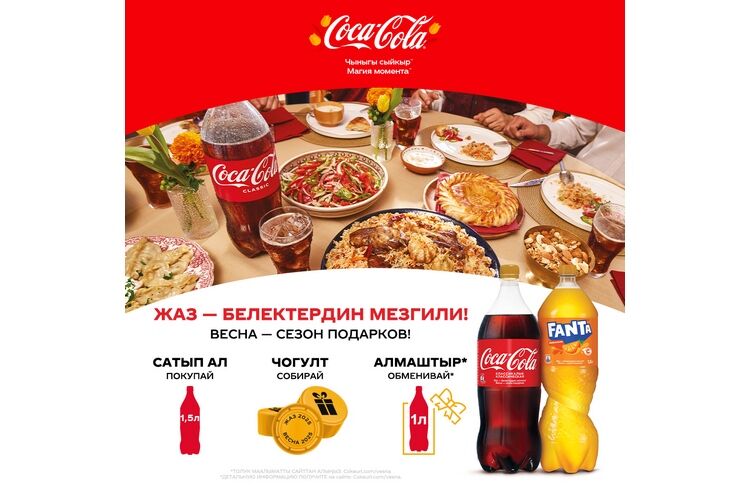 «Весна — сезон подарков!» Собери три золотистые крышки от Coca-Cola или Fanta 1,5 литра и получи 1 литр Coca-Cola Classic в подарок!*