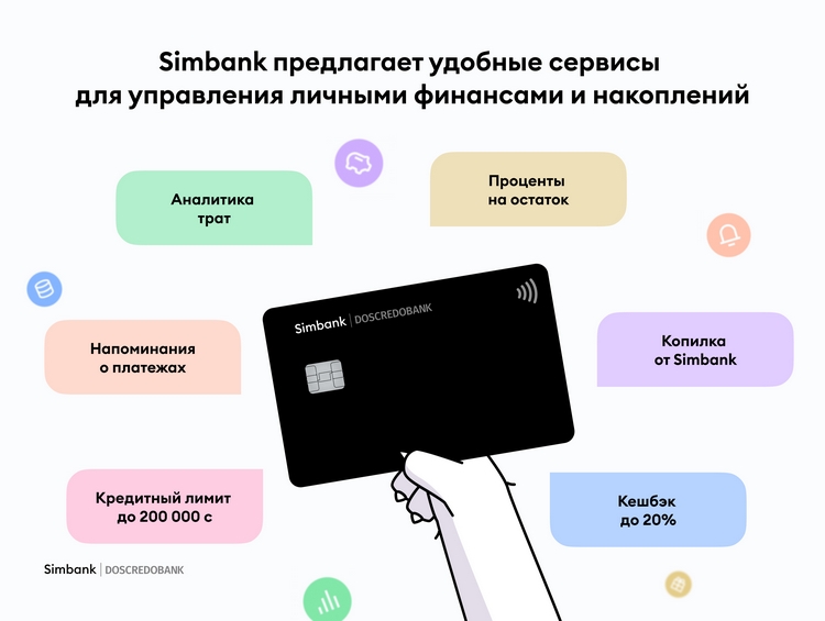 Приложение Simbank предлагает удобные сервисы для управления личными финансами и накоплений: