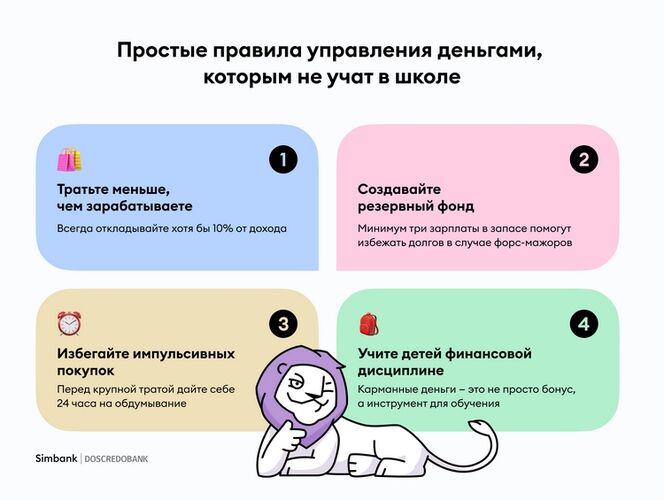 Финансовая грамотность — это не просто умение считать деньги, а ключевой навык, который влияет на качество жизни. Неправильное обращение с финансами может привести к стрессу, долгам и невозможности достичь важных целей. Simbank, мобильный банковский сервис от Doscredobank, поможет разобраться, как грамотно управлять деньгами и передать этот навык своим детям.