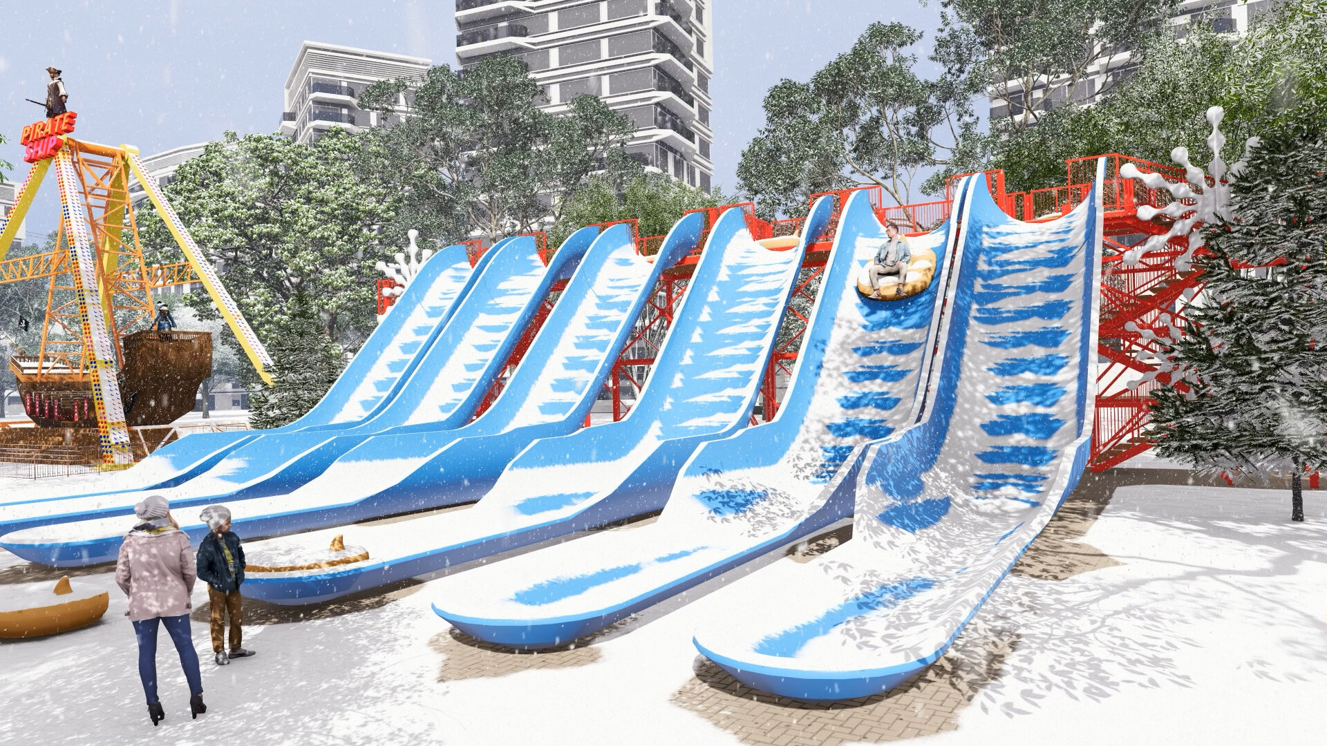 Отмечается, что основными объектами станут аквазона и цирковая площадка, детская игровая зона с батутами и лабиринтами. Также будут оборудованы мини-стадион, динопарк, высокая экстремальная горка высотой около 20 метров, ледовый каток площадью почти 2 тысячи квадратных метров и снежная горка для зимнего отдыха.