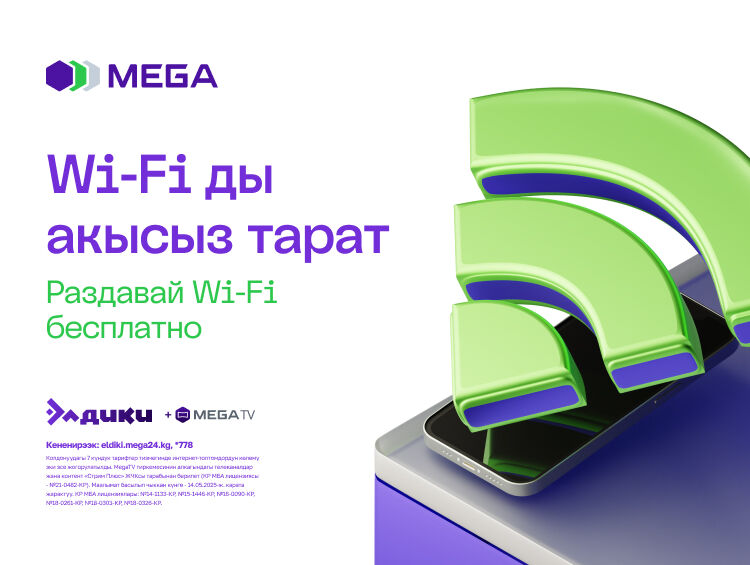 На всех тарифах актуальной линейки «Элдики + MegaTV», а также на тарифах «Специальное предложение», «Семейный» и Exclusive предусмотрена БЕСПЛАТНАЯ раздача Wi-Fi мобильного интернет-трафика без каких-либо ограничений!