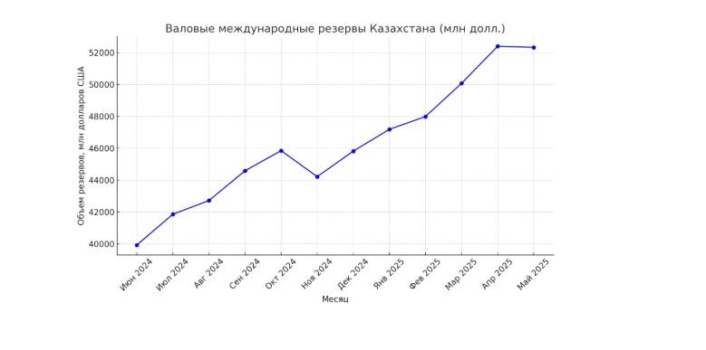 Фото предоставлено собеседником. Динамика международных резервов Республики Казахстан с июня 2024 по май 2025 года