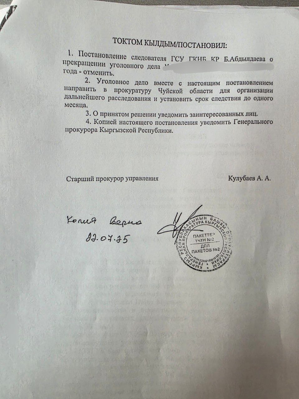 Как заявили предприниматели из Пакистана, Виктор Финк и его адвокат на судебном процессе в Чуйском областном суде заявили им, что были в Генеральной прокуратуре на приеме и что постановление о прекращении уголовного преследования Мухаммада Имран Назира отменили. В Генпрокуратуре предпринимателям информацию подтвердили.