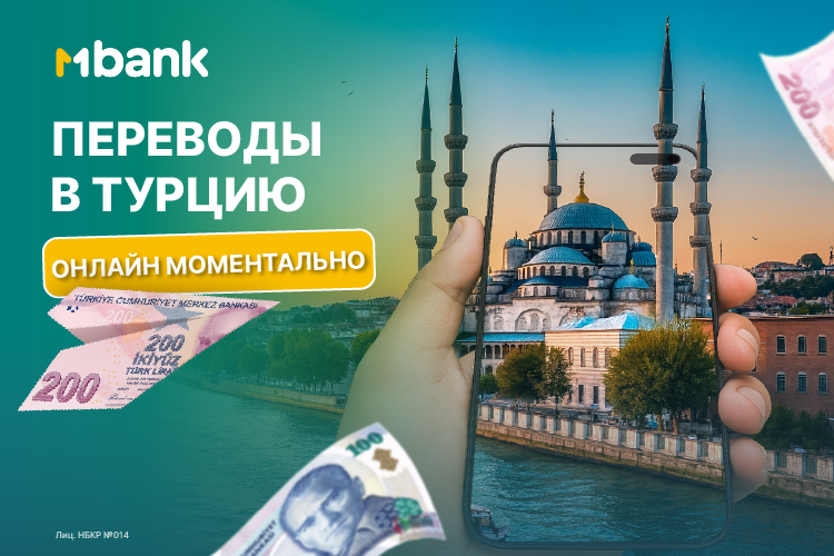 Получаете деньги из Турции? Просто скажите отправителю номер телефона, привязанный к вашему MBANK, или номер карты. Для получения средств доступны валюты: сомы, евро, рубли или доллары США.