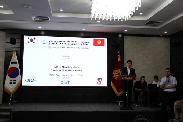 28 августа 2025 года Представительство Корейского агентства международного сотрудничества (KOICA) в Кыргызской Республике совместно с Ассоциацией выпускников KOICA провело второй семинар по обмену знаниями для выпускников KOICA и госслужащих из различных ведомств. Темой семинара стало «Умное сельское хозяйство и изменение климата в Кыргызской Республике».