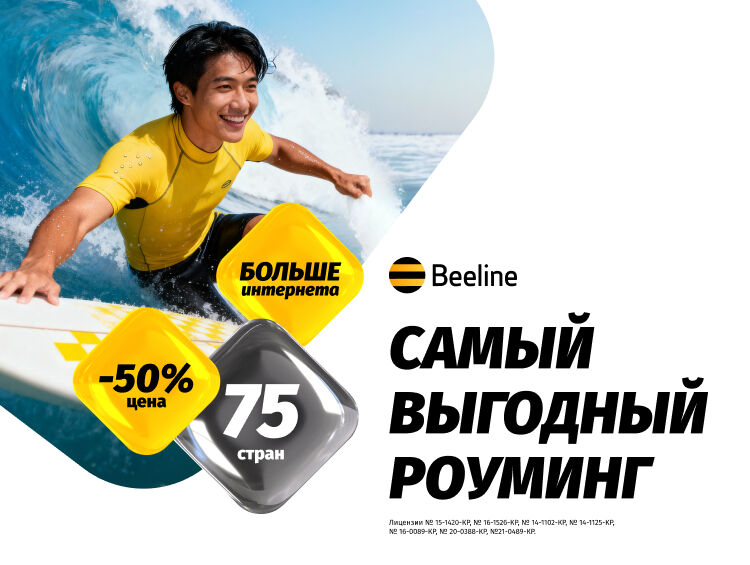 Куда бы вы ни отправились — в отпуск, в командировку, в тур или в образовательную поездку — с роуминг-пакетами Beeline мобильный интернет всегда под рукой. Это значит, что вы сможете свободно общаться, работать, искать нужную информацию, пользоваться онлайн-сервисами и делиться впечатлениями в соцсетях.