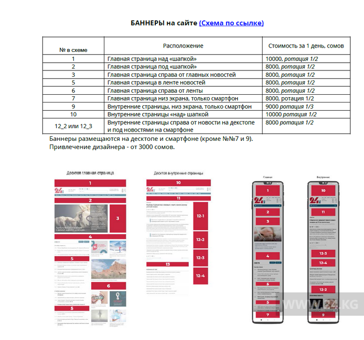 Стоимость размещения политической рекламы и агитационных материалов на сайте https://24-kg.com/ и в соцсетях на страницах ИА «24-kg.com».