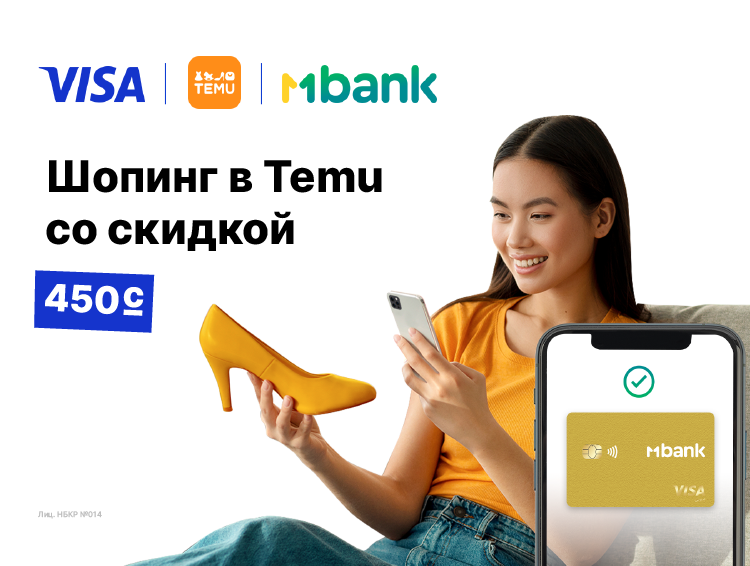 В рамках акции любой клиент MBANK, совершая покупку в Temu на сумму от 1 тысячи 800 сомов (≈ $20) и оплачивая картой Visa MBANK, получает автоматическую скидку 450 сомов.