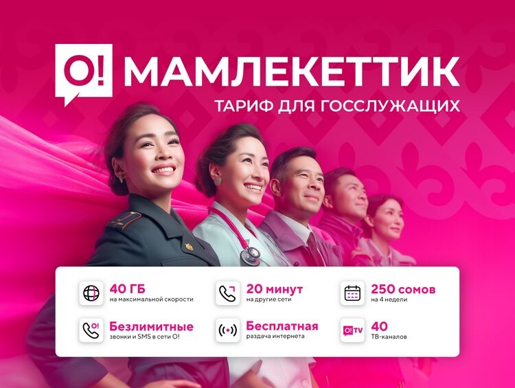 О! продолжает поддерживать сотрудников госсектора, предлагая специализированное решение «О!Мамлекеттик». Это тариф для тех, чья работа не ограничивается кабинетом и требует качественной связи в самых разных условиях по всему Кыргызстану.