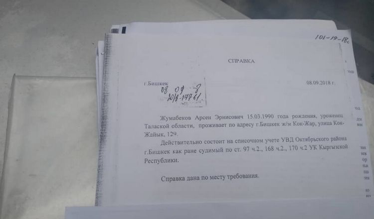 3 сентября 2018 года троих сотрудников Ленинского РОВД обвинили в похищении человека и применении пыток по статьям 324 и 305-1 УК КР.