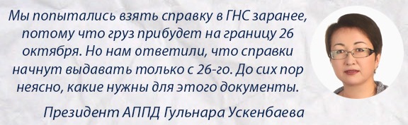 - У многих поставщиков грузы прибудут в ночь с 25 на 26 октября. Получить справку они смогут лишь 26-го. Получается, целый день груз и транспорт в простое, что создает дополнительные проблемы для бизнеса.